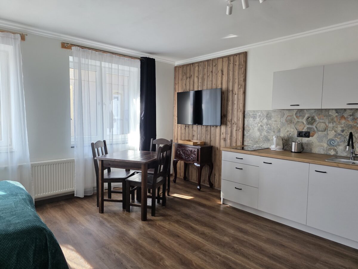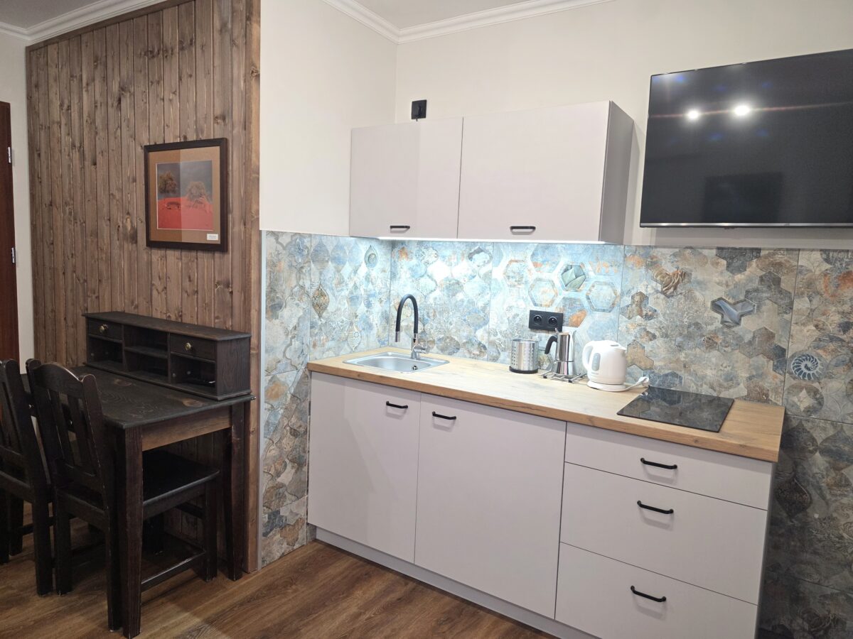 Pokój na parterze, z własnym aneksem kuchennym z łazienką, o powierzchni 17 m